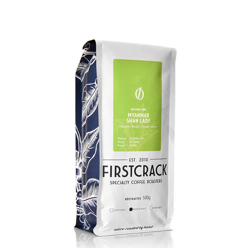 FIRSTCRACK hat für den hochwertigen Rohkaffee aus Myanmar mit viel Liebe zum Detail ein spezielles Röstprofil entwickelt. So kommt der charakteristische Geschmack der Red Catuai Kaffeebohnen und ihre Herkunftsnoten besonders zur Geltung. Das Ergebnis ist ein köstlicher Kaffee mit mittlerem Röstgrad, welcher geschmacklich sowohl an Schokolade, Nougat und Karamell, als auch an Kirsche zu erinnern vermag.